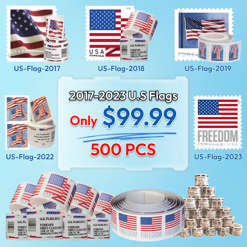 Limited Time Deal: $89.99 for 5 Rolls(500 Forever Stamps) – 2017/2018/2019/2022 Flag