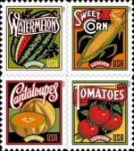 The art for these Stamps was inspired by vintage shipping crate labels, seed packets, and catalogs inspired.??Each stamp in the set was designed and drawn by Michael Doret.